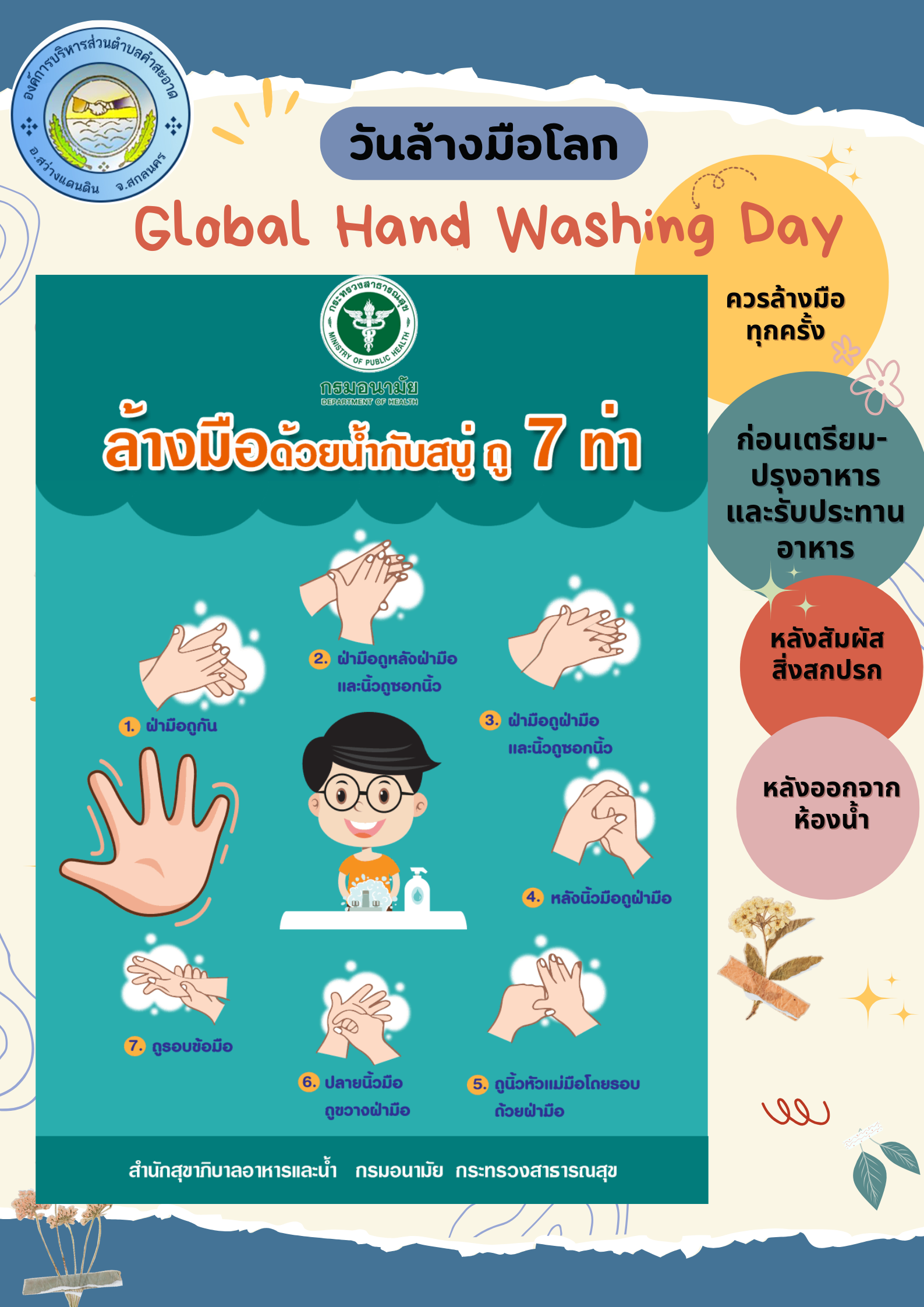 วันที่ 25 ตุลาคม 2568 องค์การบริหารส่วนตำบลคำสะอาดได้จัดกิจกรรมรณรงค์วันล้างมือโลก ประจำปี 2568 เพื่อส่งเสริมให้ประชาชนเรียนรู้การล้างมือที่ถูกต้อง และเพื่อสร้างสุขอนามัยที่ดีให้แก่ประชาชน ณ ห้องประชุมองค์การบริหารส่วนตำบลคำสะอาด