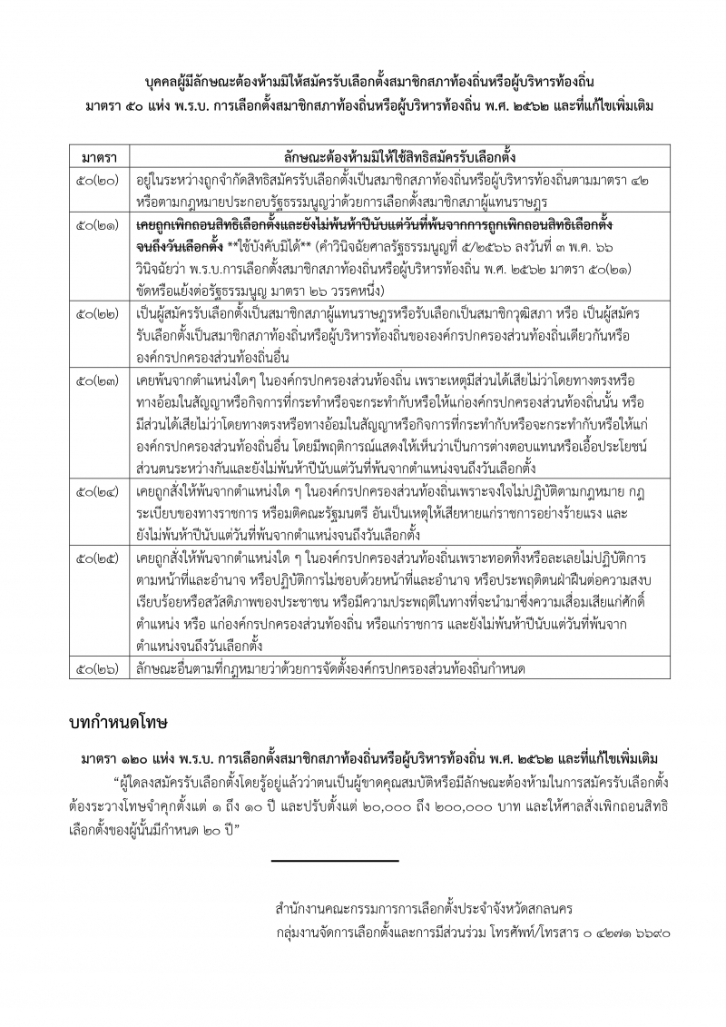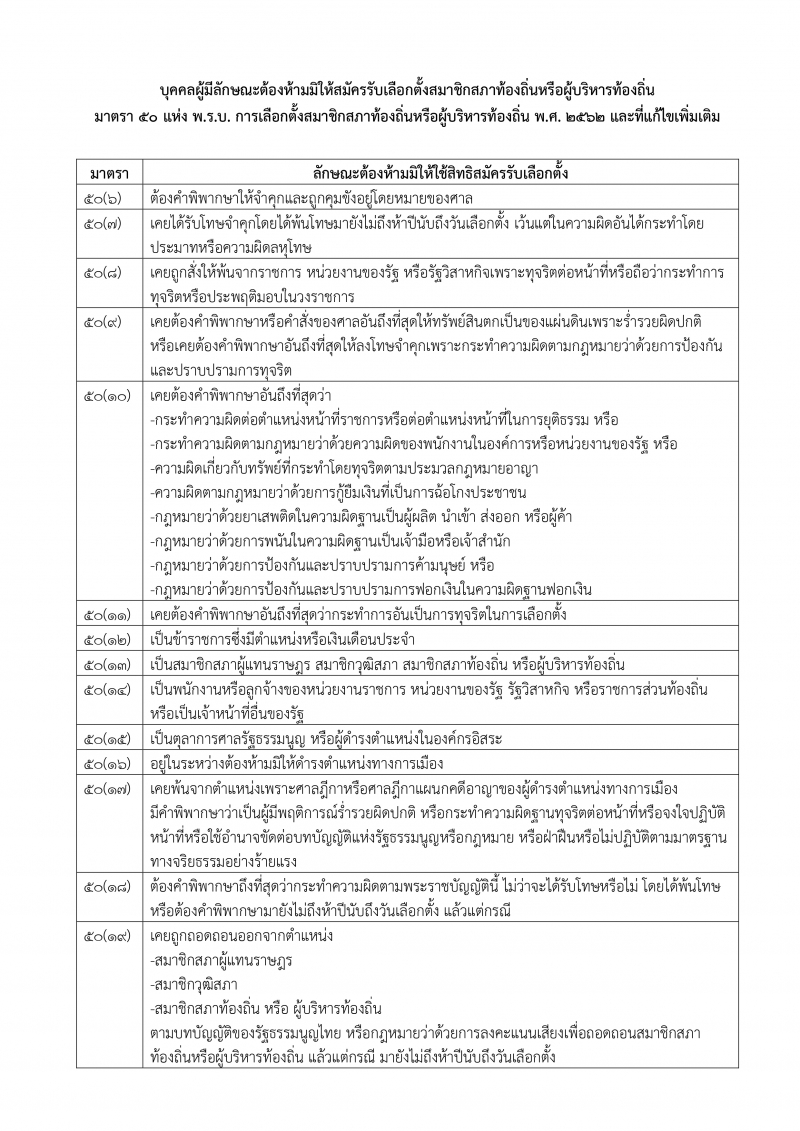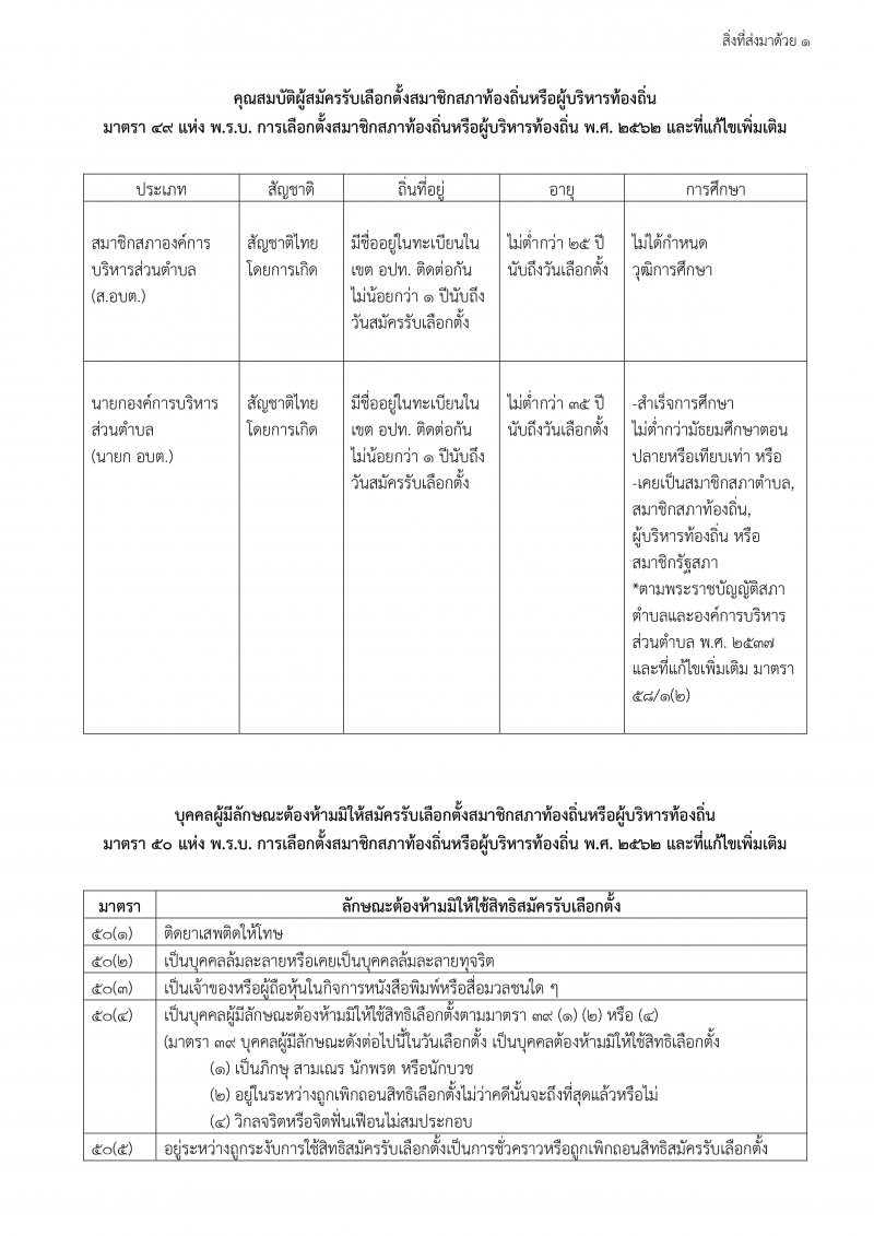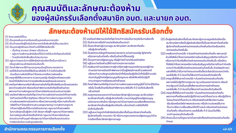 ประชาสัมพันธ์คุณสมบัติและลักษณะต้องห้ามของผู้สมัครรับเลือกตั้งสมาชิก อบต. และนายก อบต.